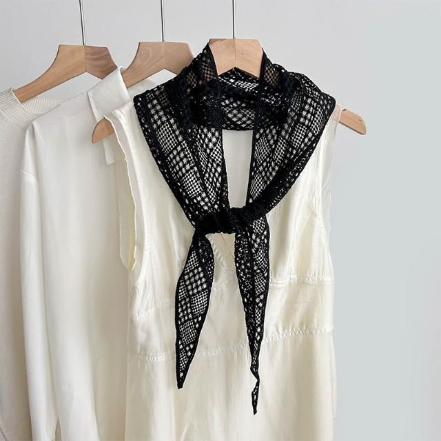 新款春夏镂空三角巾女薄款棉麻時尚百搭頭巾裝飾領巾配飾外搭