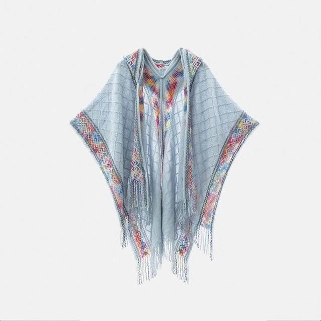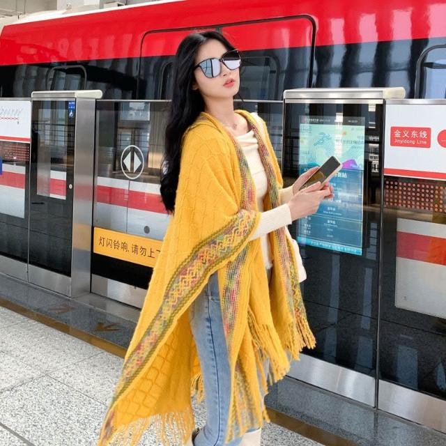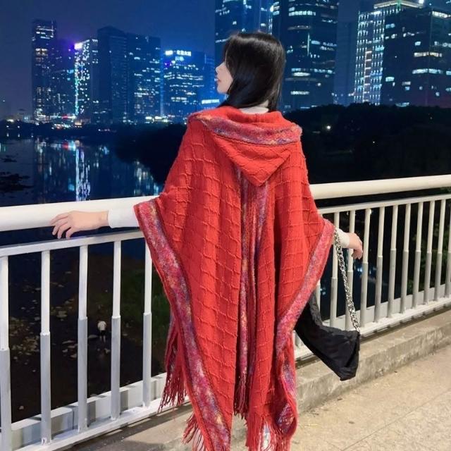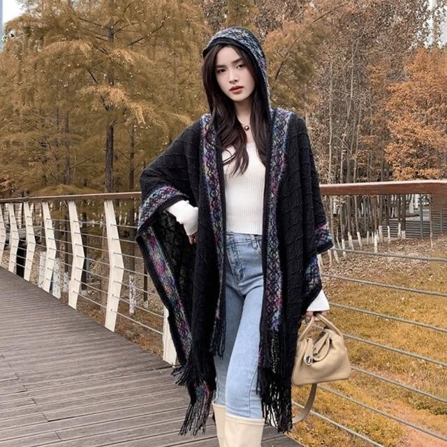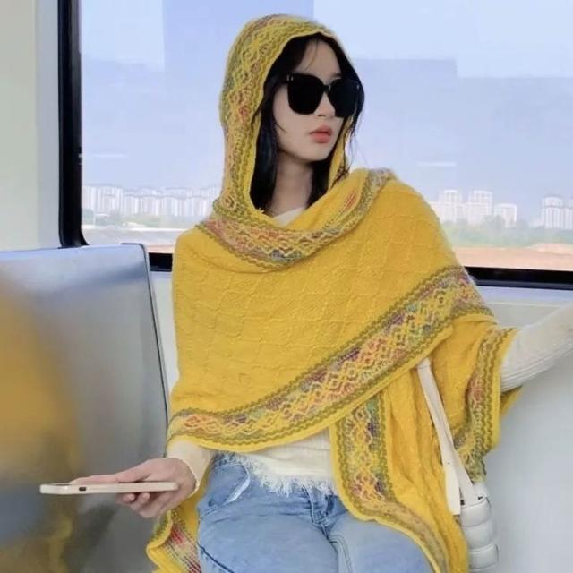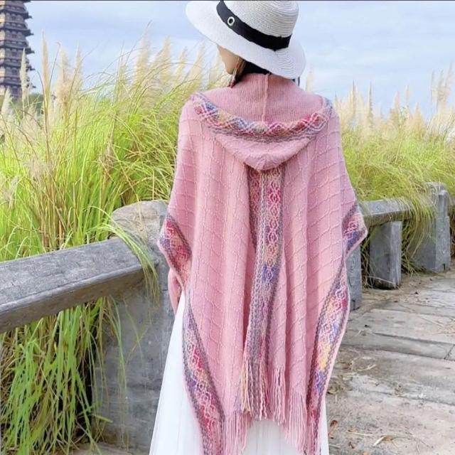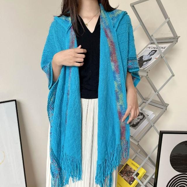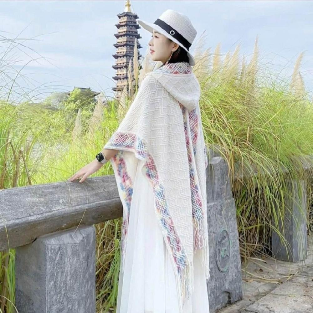 民族風連帽披肩女外搭套頭鬥篷空調房雲南西藏旅行拍照圍巾廢土風