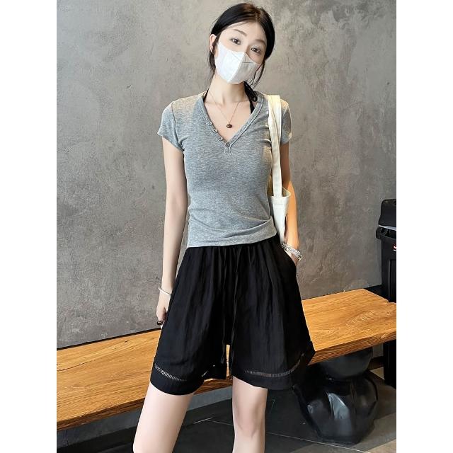 松弛感復古镂空花邊短褲女夏季薄款冰絲棉麻a字闊腿亞麻短褲