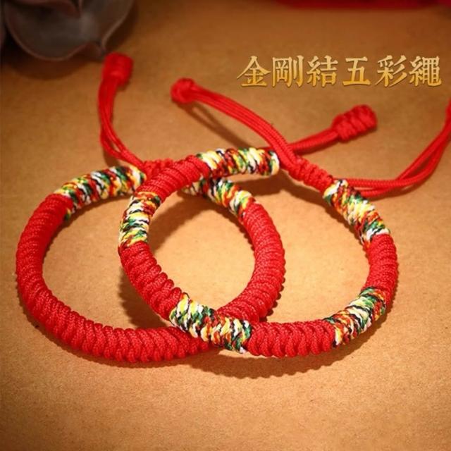 藏式金剛結五色線手繩 手工編織紅繩開運手環 男女情侶結緣手鍊 招財辟邪本命年祈福飾品 五色線紅繩開運手環