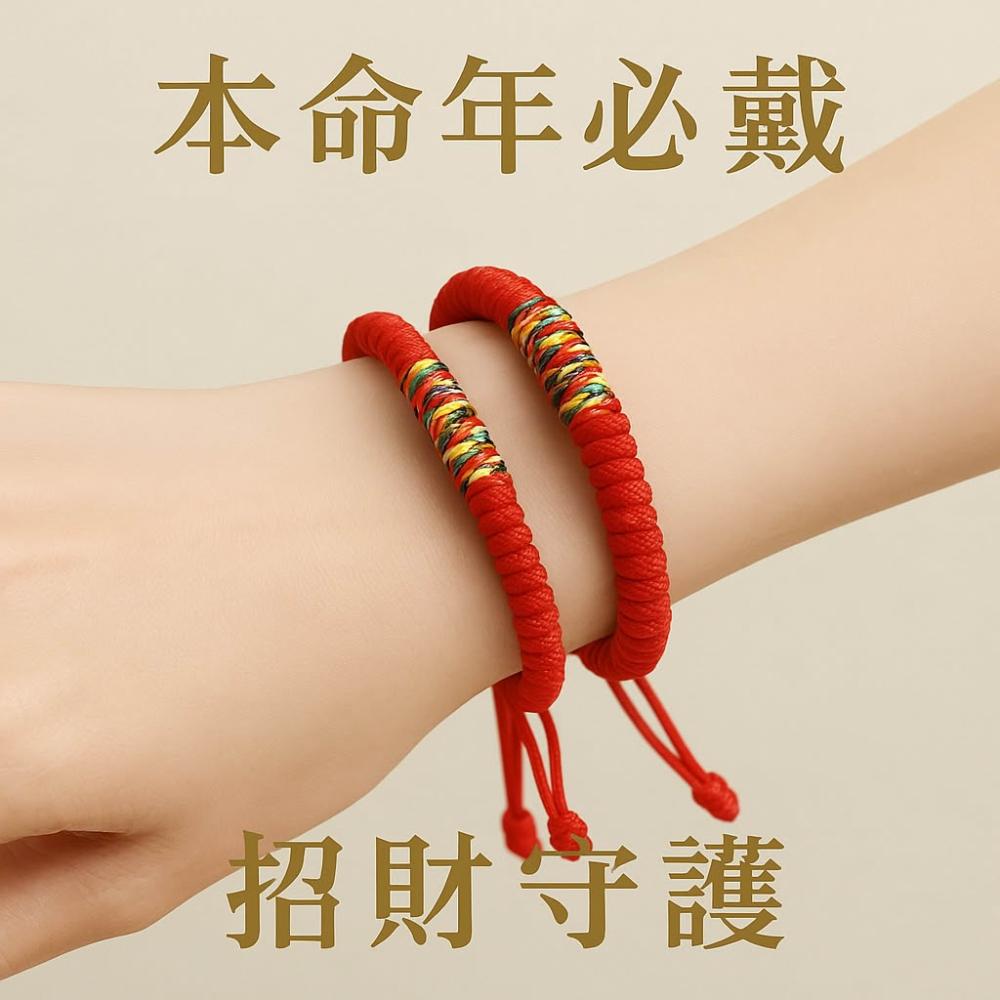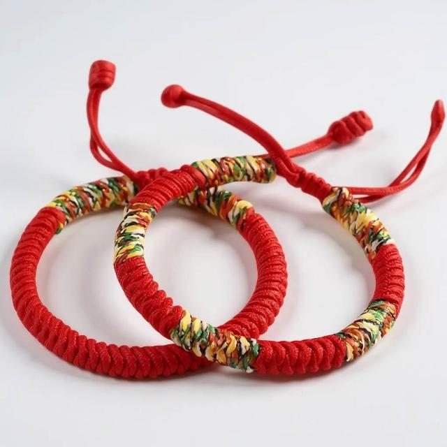 藏式金剛結五色線手繩 手工編織紅繩開運手環 男女情侶結緣手鍊 招財辟邪本命年祈福飾品 五色線紅繩開運手環