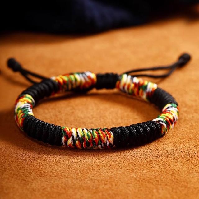 藏式金剛結五色線手繩 手工編織紅繩開運手環 男女情侶結緣手鍊 招財辟邪本命年祈福飾品 五色線紅繩開運手環