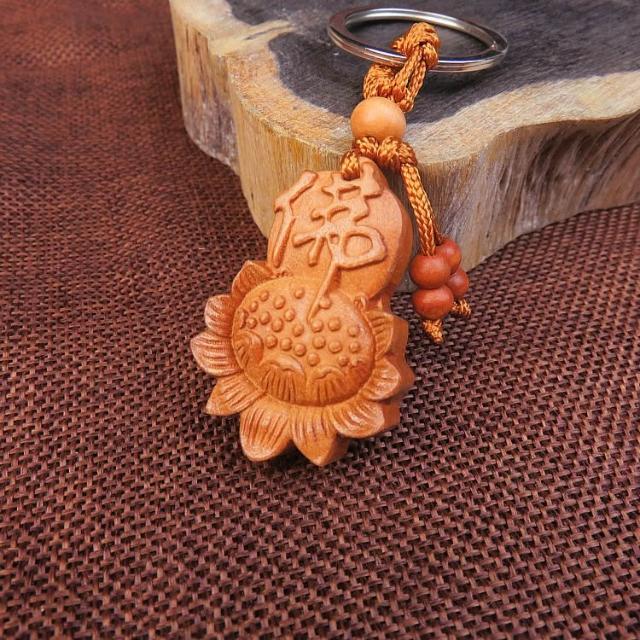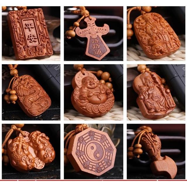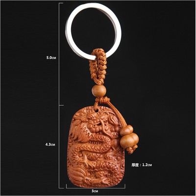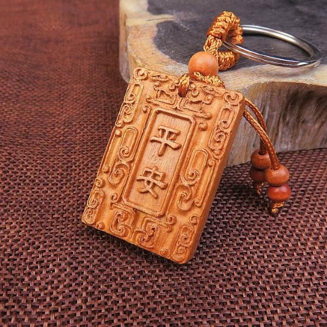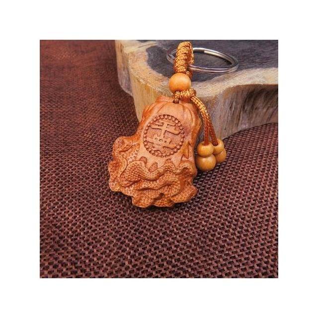 開運平安鑰匙圈掛飾 桃木立體木雕工藝品 辟邪保平安鑰匙扣