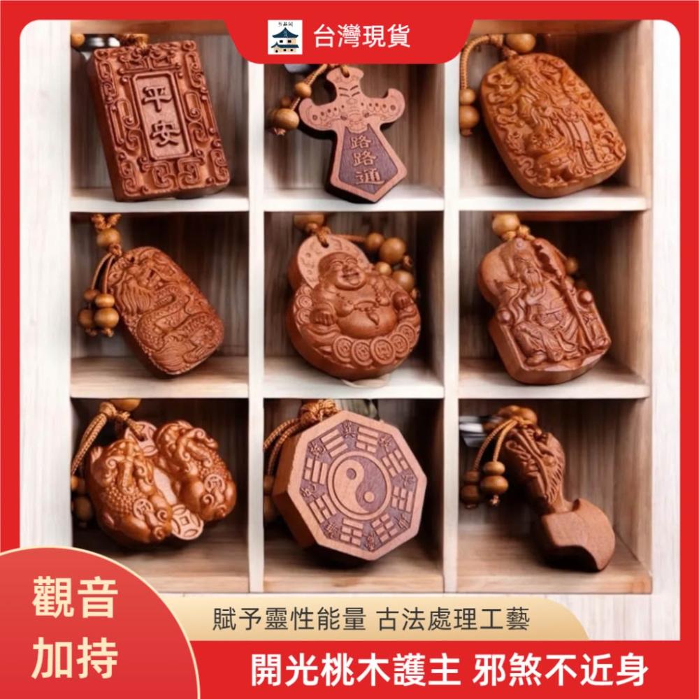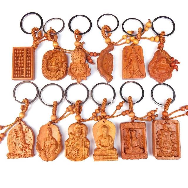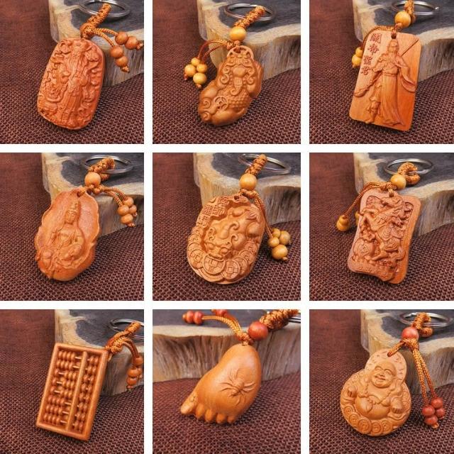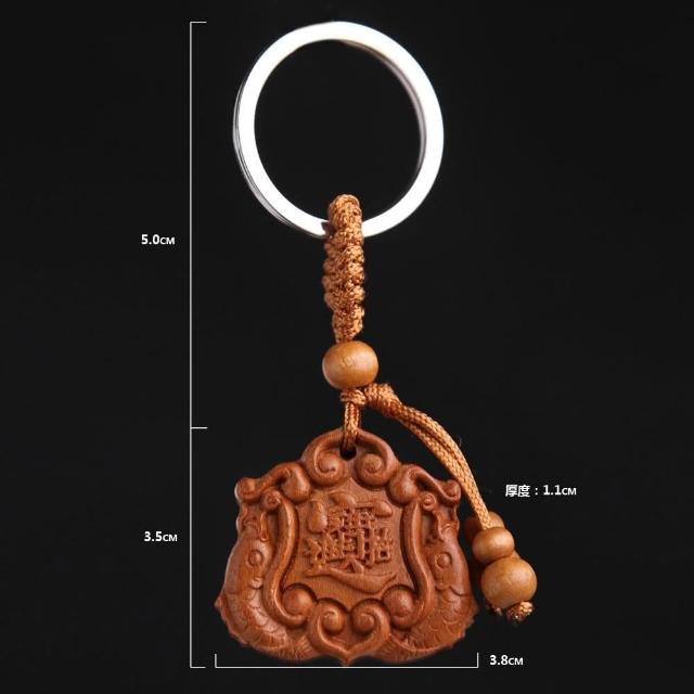 開運平安鑰匙圈掛飾 桃木立體木雕工藝品 辟邪保平安鑰匙扣