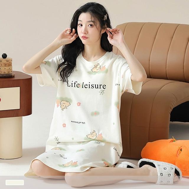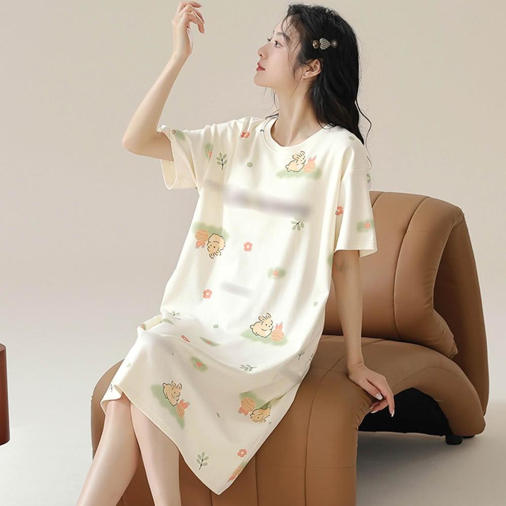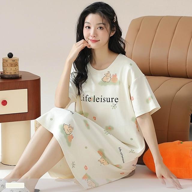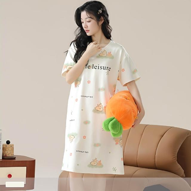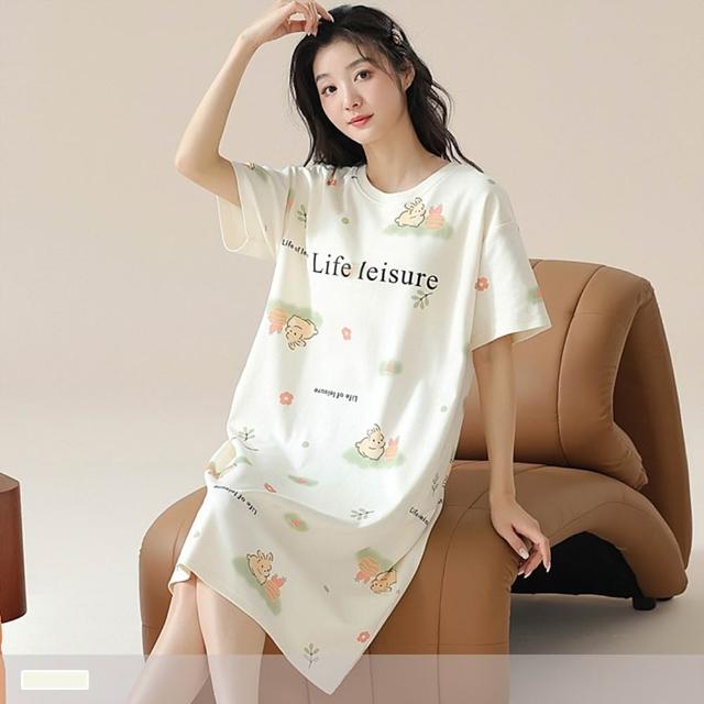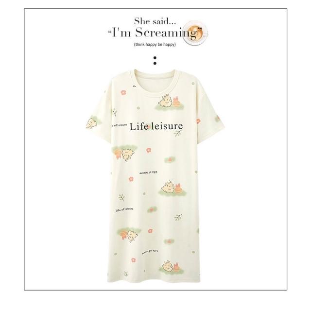 PINK LADY兔子童話 棉柔舒適 連身睡裙 春夏 圓領 印花 柔感 短袖睡裙 女睡衣 居家服 11813
