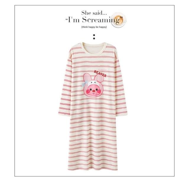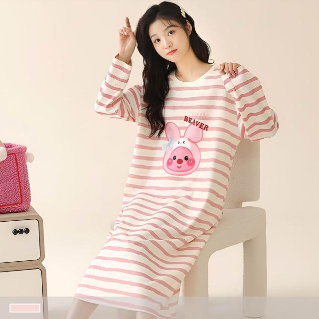 PINK LADY俏皮兔兔 長袖睡裙 棉柔 秋冬 圓領 印花 條紋柔感 女睡衣 保暖睡裙 居家睡衣 居家服 11834