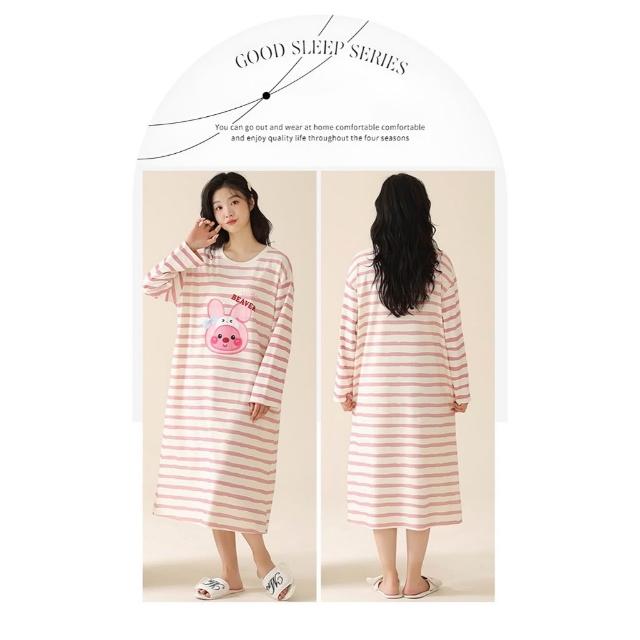 PINK LADY俏皮兔兔 長袖睡裙 棉柔 秋冬 圓領 印花 條紋柔感 女睡衣 保暖睡裙 居家睡衣 居家服 11834