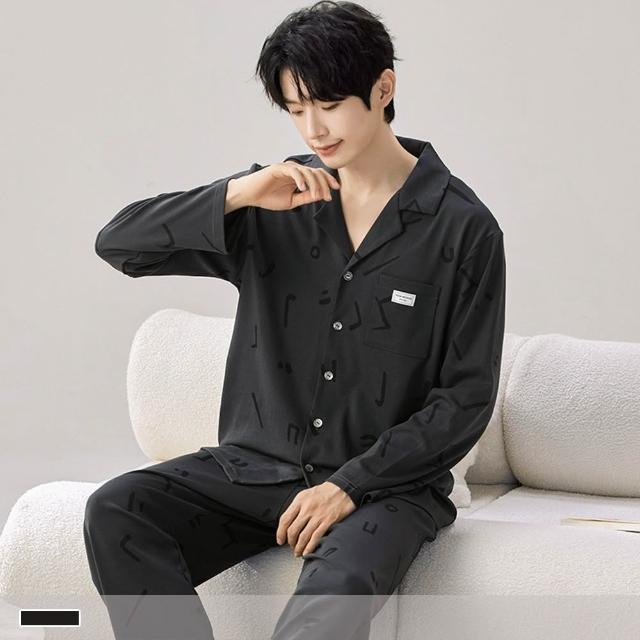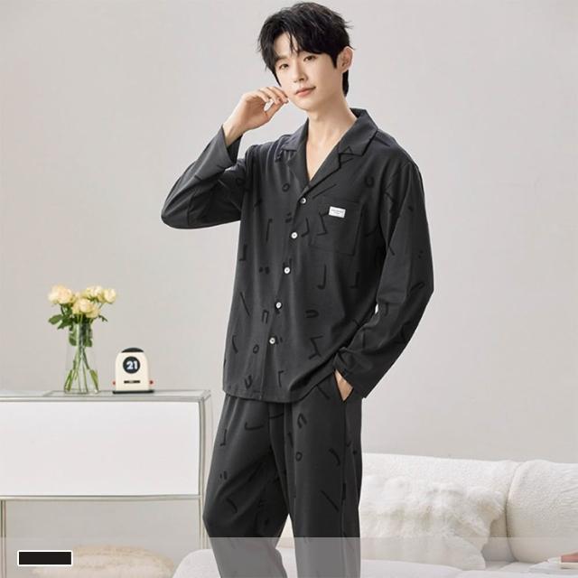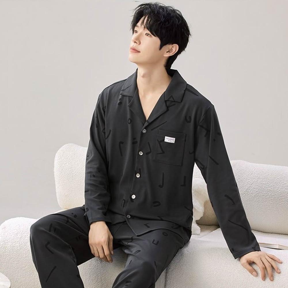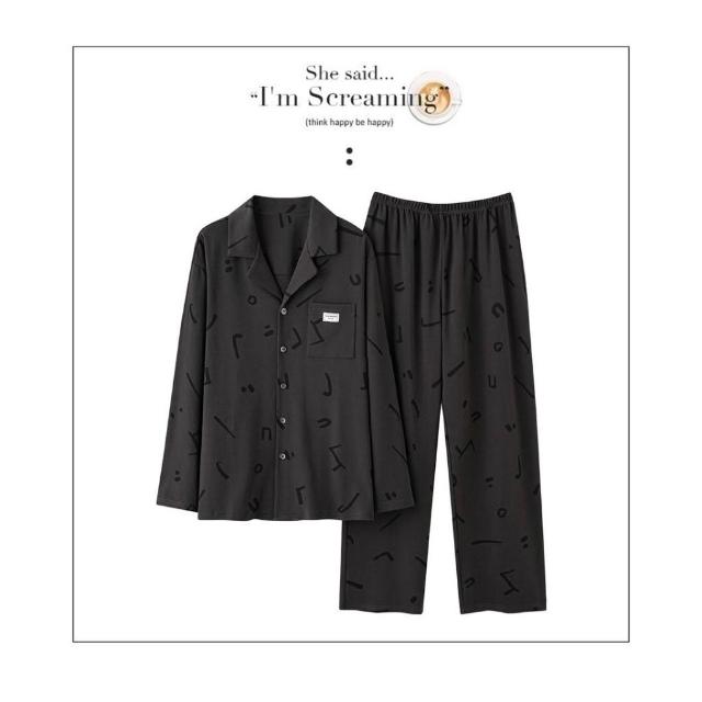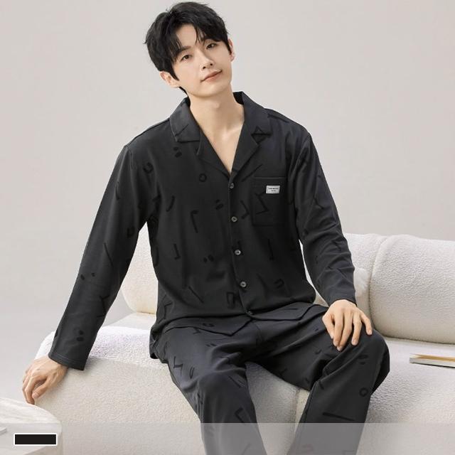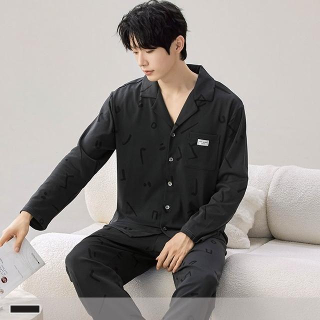 PINK LADY暗刻音符 排扣 棉柔 成套睡衣 圓領 印花 寬版 長袖長褲 情侶睡衣 居家服 7725