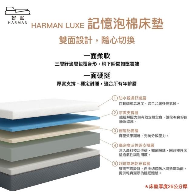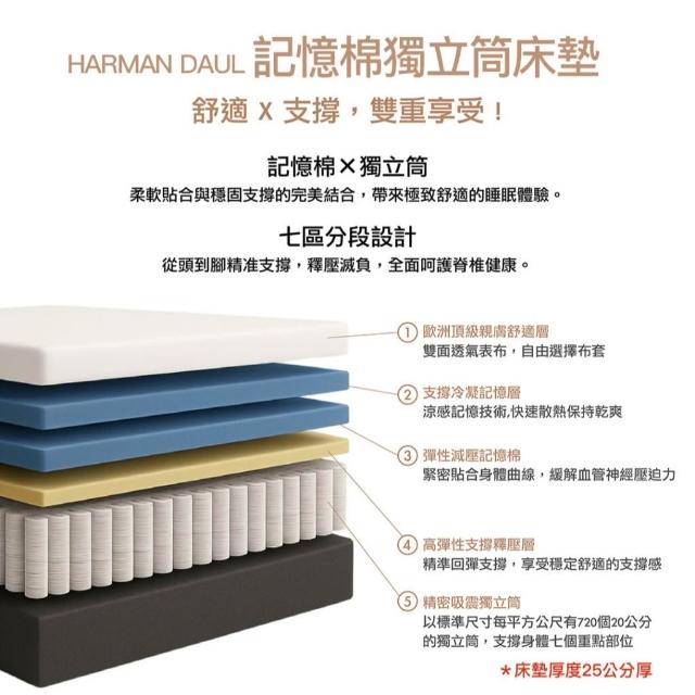 25cm厚冷凝膠記憶棉床墊|記憶棉獨立筒床墊|獨立筒支撐・泰國進口|Harman好眠