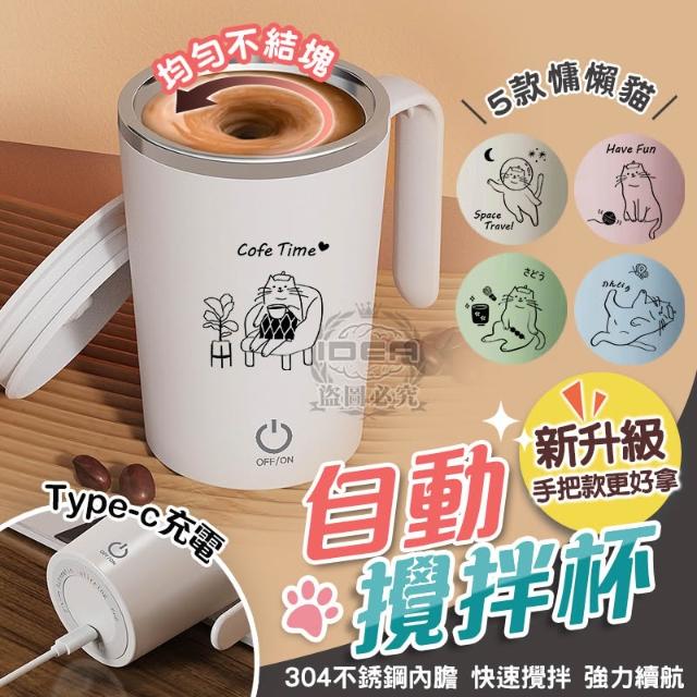 IDEA🐱【慵懶貓】自動攪拌杯 實心杯蓋 不鏽鋼內膽 IPX6級防水 電動攪拌杯 磁力攪拌杯 攪拌杯