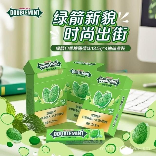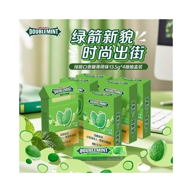 文文甄選 綠箭煙盒金裝抽抽盒60片起車載口香糖薄荷清新口氣
