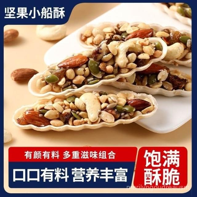 文文甄選 堅果小船酥餅幹大顆粒獨立小包裝特産混閤巴旦木休閒零食解饞袋裝