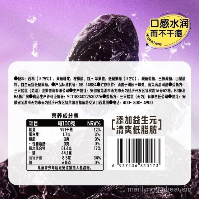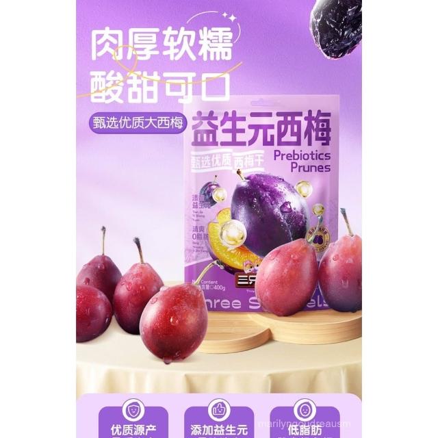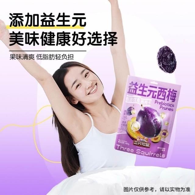 文文甄選 三衹鬆鼠益生元西梅幹400g梅子痠甜果喫解饞休閒零食