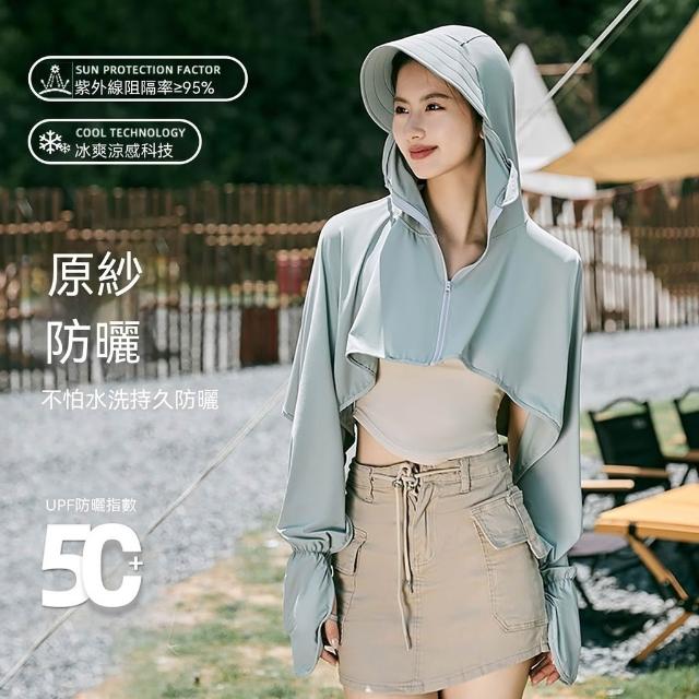 優先購防曬衣女夏季2026新款斗篷披肩冰絲原紗防紫外線戶外遮陽薄防曬服