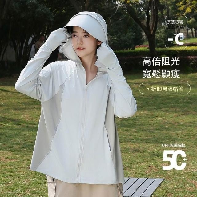優先購防曬衣夏季女士防紫外線薄透氣可拆卸黑膠帽檐遮陽拼色護手防曬服