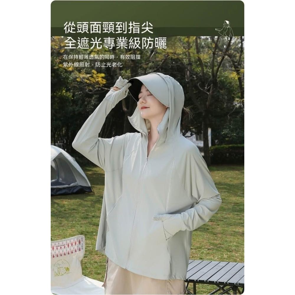 優先購防曬衣夏季女士防紫外線薄透氣可拆卸黑膠帽檐遮陽拼色護手防曬服