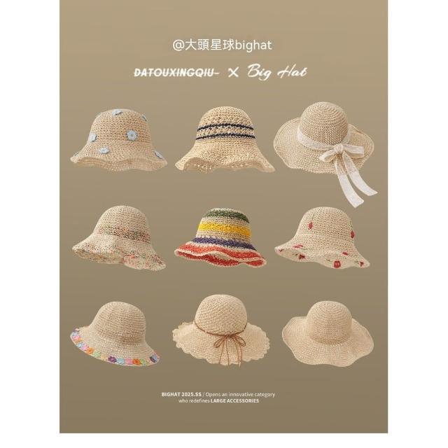 優先購【大頭星球】海邊度假拉菲編織草帽系列2026夏新款防曬遮陽漁夫帽