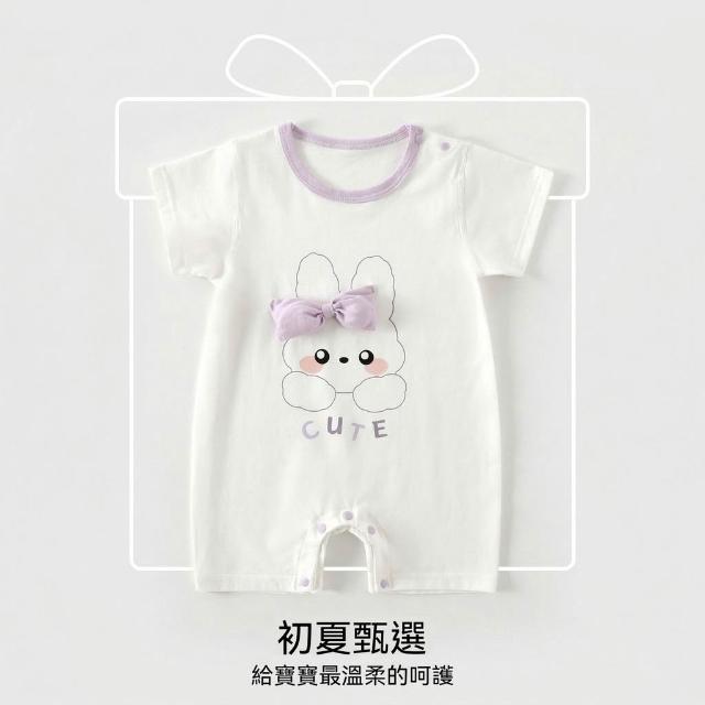 優先購嬰兒連體衣短袖夏季莫代爾薄款新生兒哈衣爬服家居服寶寶透氣衣服