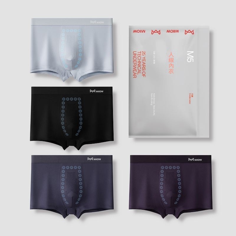 優先購貓人正品男士內褲按摩顆粒平角短褲冰絲棉感抗菌吸汗褲男吸溼排汗