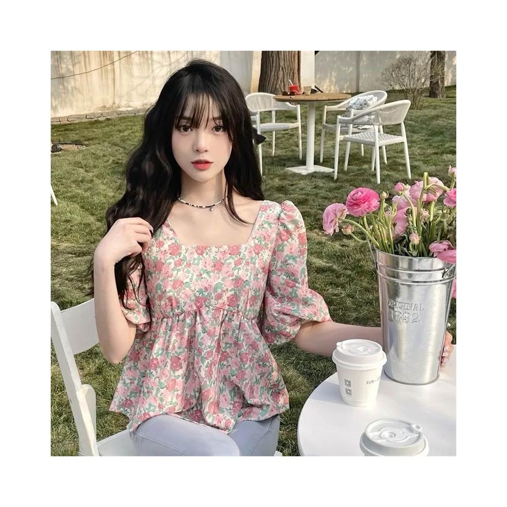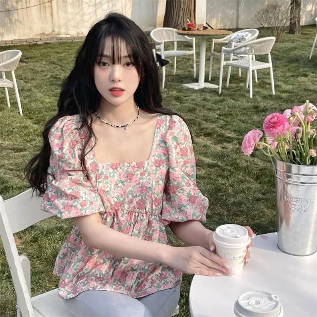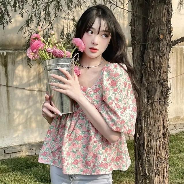 優先購2026夏季新款設計感小衆ins甜辣大碼女裝碎花短袖別緻短款上衣潮