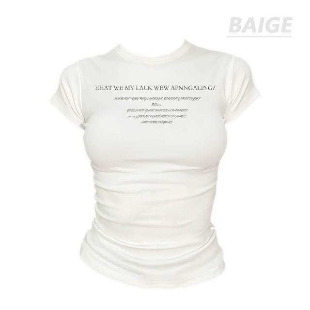 優先購BAIGE正肩純棉修身IBAIGE 印花百搭NS風短袖打底衫少女風短袖上衣