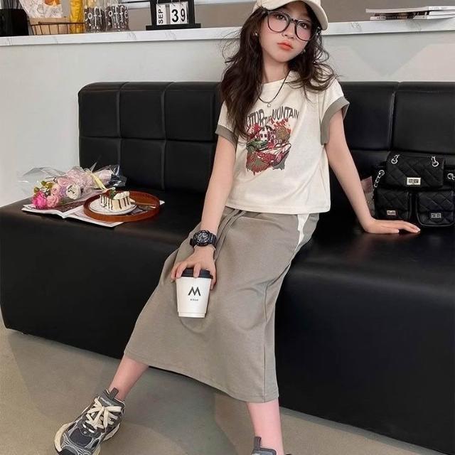 優先購女童連衣裙夏季2026新款洋氣中大童裝洋氣短袖兩件套兒童套裝裙夏