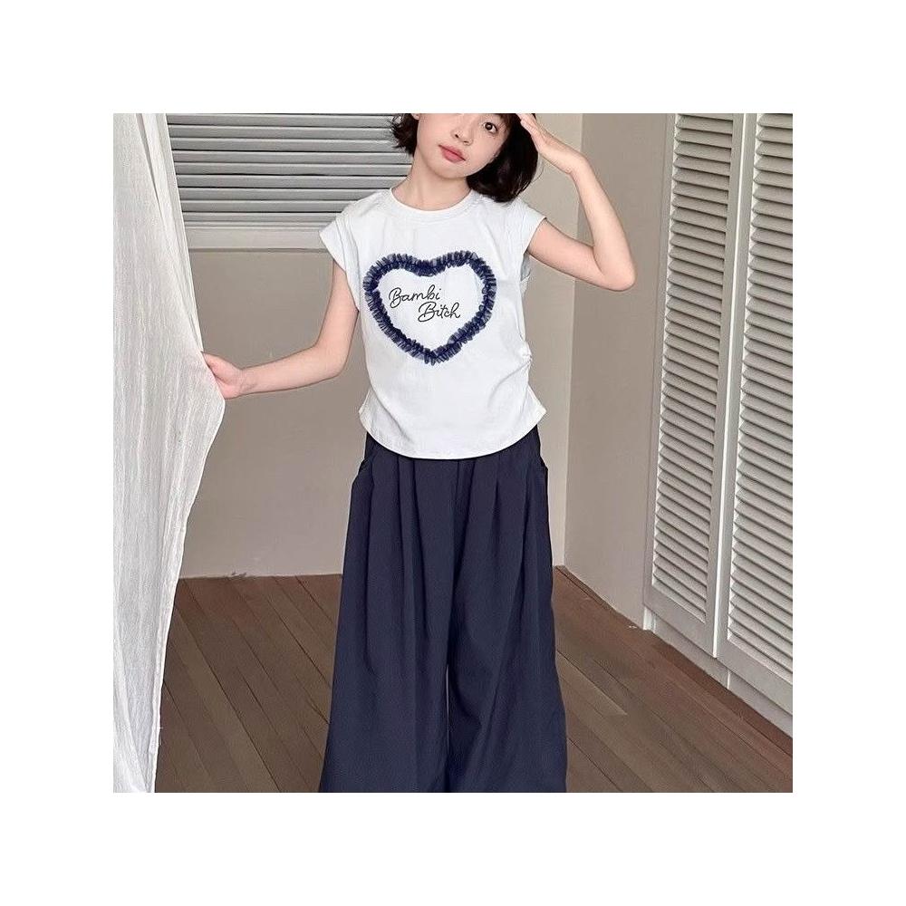 優先購女童夏裝2026新款洋氣女孩大童愛心短袖夏季薄款休閒闊腿褲套裝潮