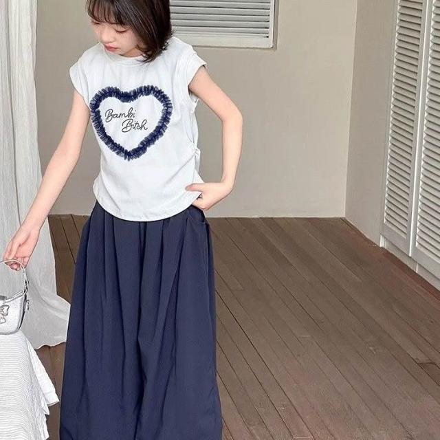 優先購女童夏裝2026新款洋氣女孩大童愛心短袖夏季薄款休閒闊腿褲套裝潮
