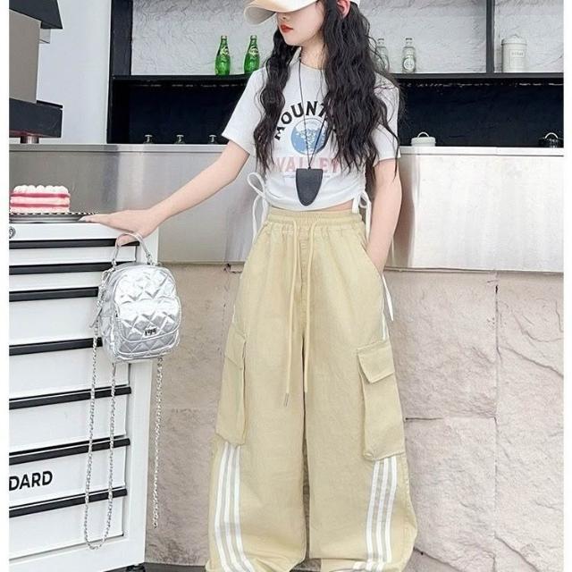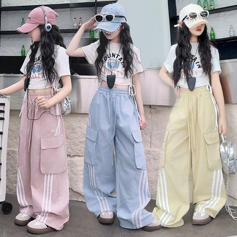 優先購夏季女童套裝2026新款夏裝兒童多巴胺工裝褲女大童爵士舞褲子服裝