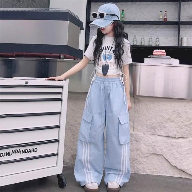 優先購夏季女童套裝2026新款夏裝兒童多巴胺工裝褲女大童爵士舞褲子服裝