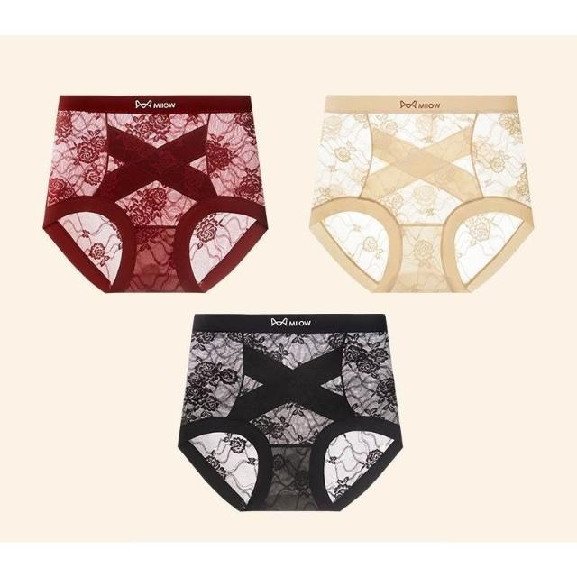 優先購貓人女士內褲蕾絲玫瑰10A抗菌高腰收腹桑蠶絲溫感內襠日常約會