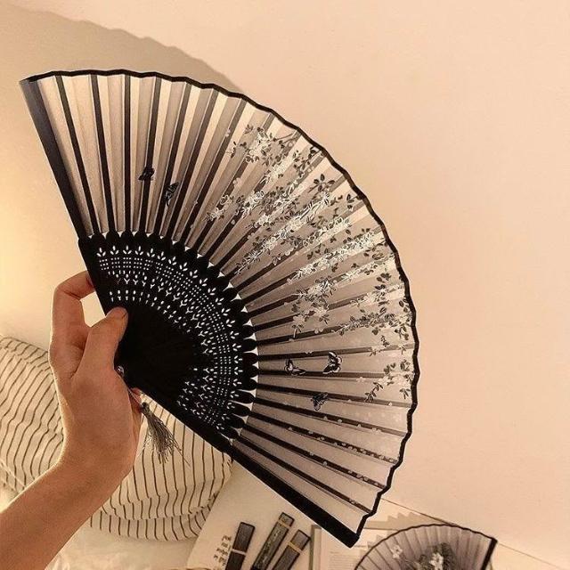 優先購中國風摺疊小扇子隨身攜帶古風漢服古裝舞蹈新中式夏天黑色竹扇女