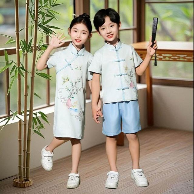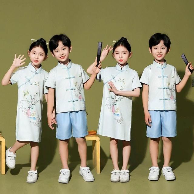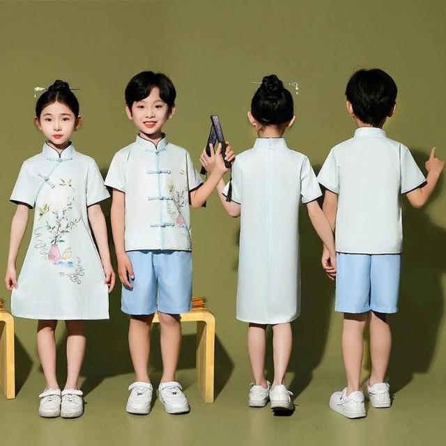 優先購兒童漢服夏裝女童民國風班服男童國學唐裝小學生合唱幼兒園演出服