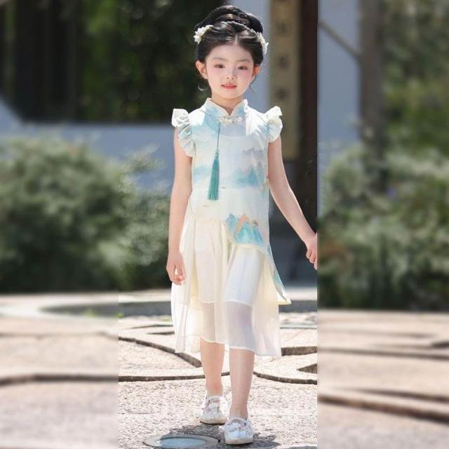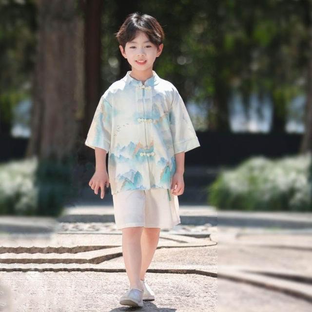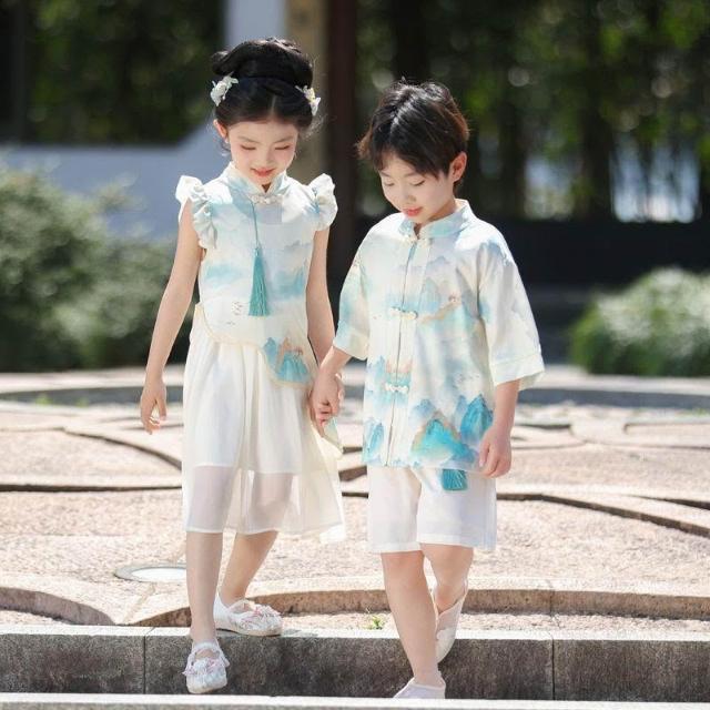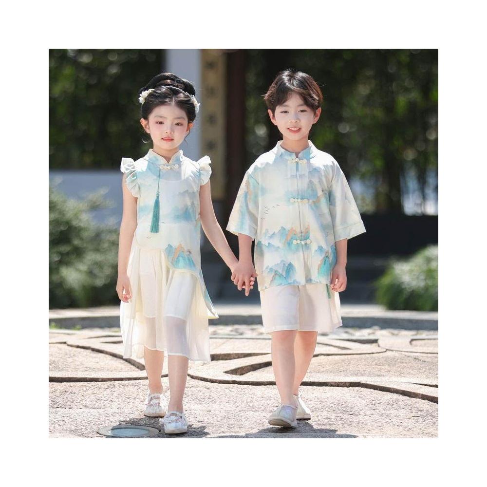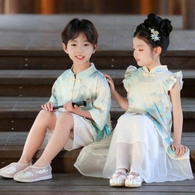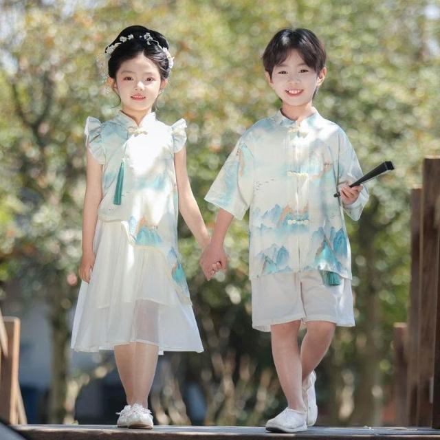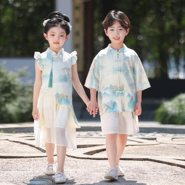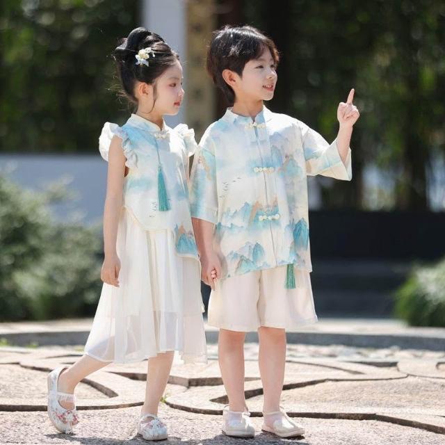 優先購兒童漢服男女童新中式漢服短袖套裝夏季新款唐裝國學中國風演出服