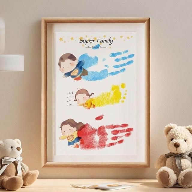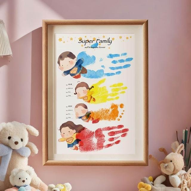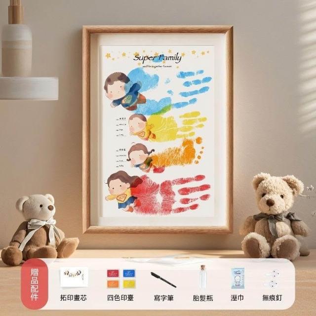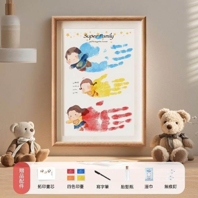優先購寶寶滿月紀念品手足腳印全家福親子印畫小超人創意百天相框週歲禮