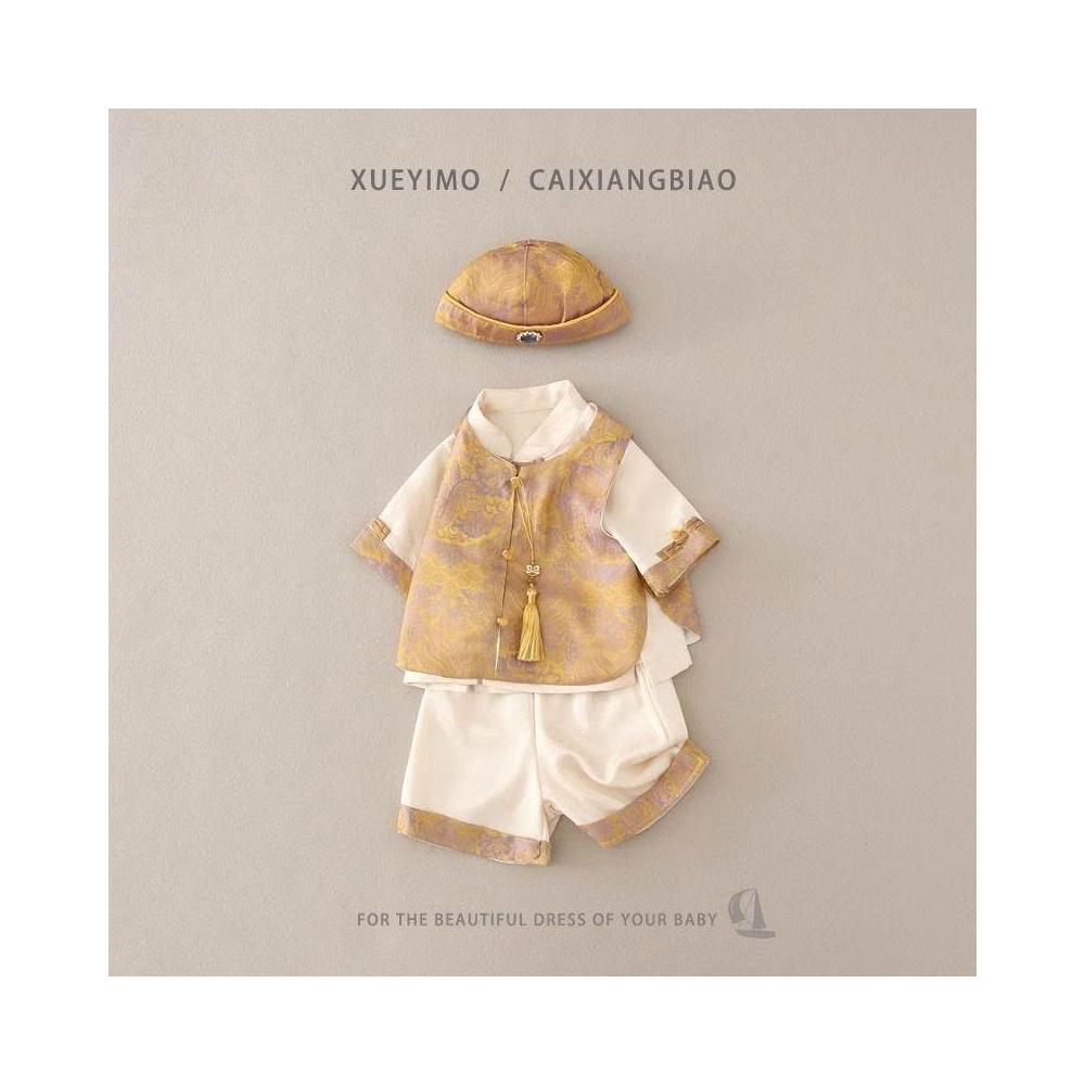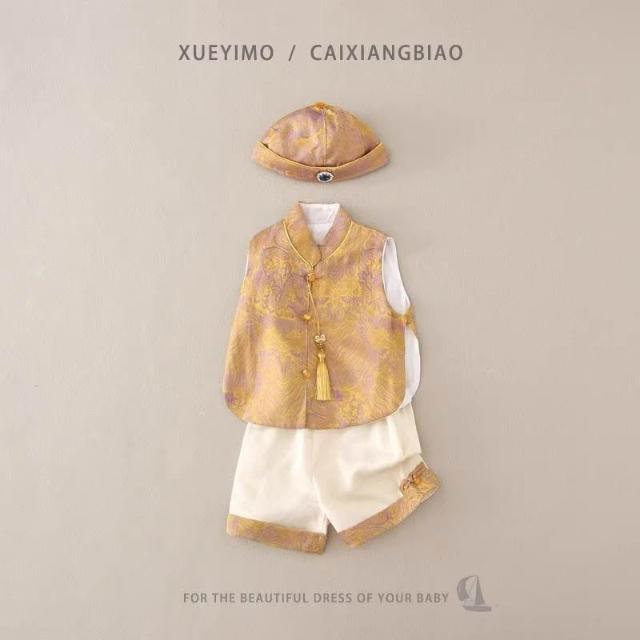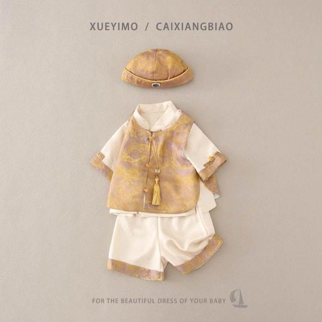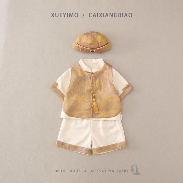 優先購週歲禮服男寶寶抓週服男童漢服套裝新中式唐裝嬰兒背心滿月衣服