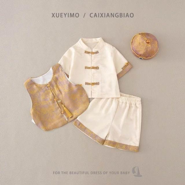 優先購週歲禮服男寶寶抓週服男童漢服套裝新中式唐裝嬰兒背心滿月衣服