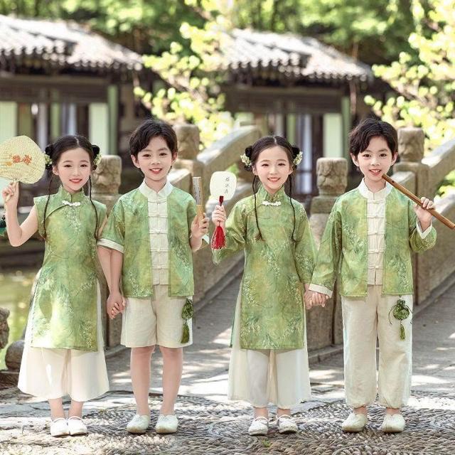 優先購漢服兒童演出服春秋季男童古裝女童唐裝新中式國風幼兒園國學服裝