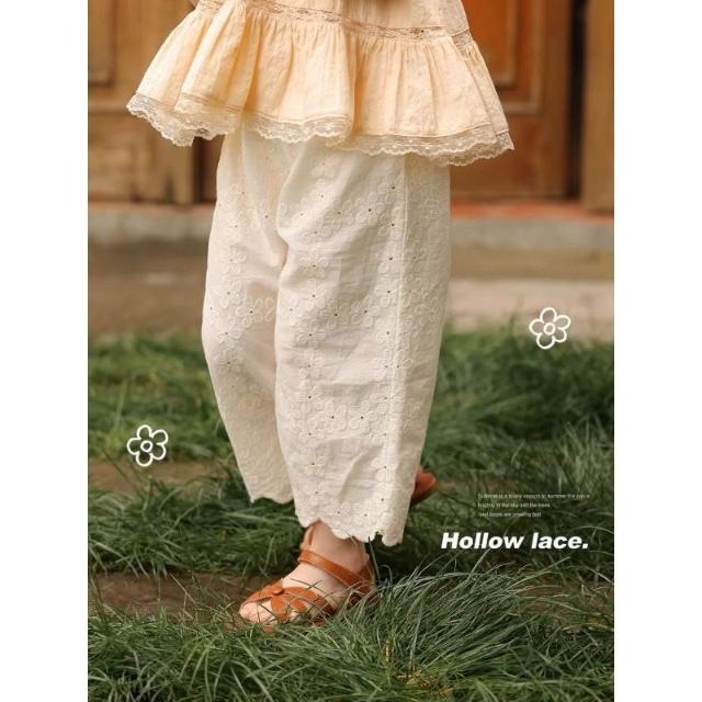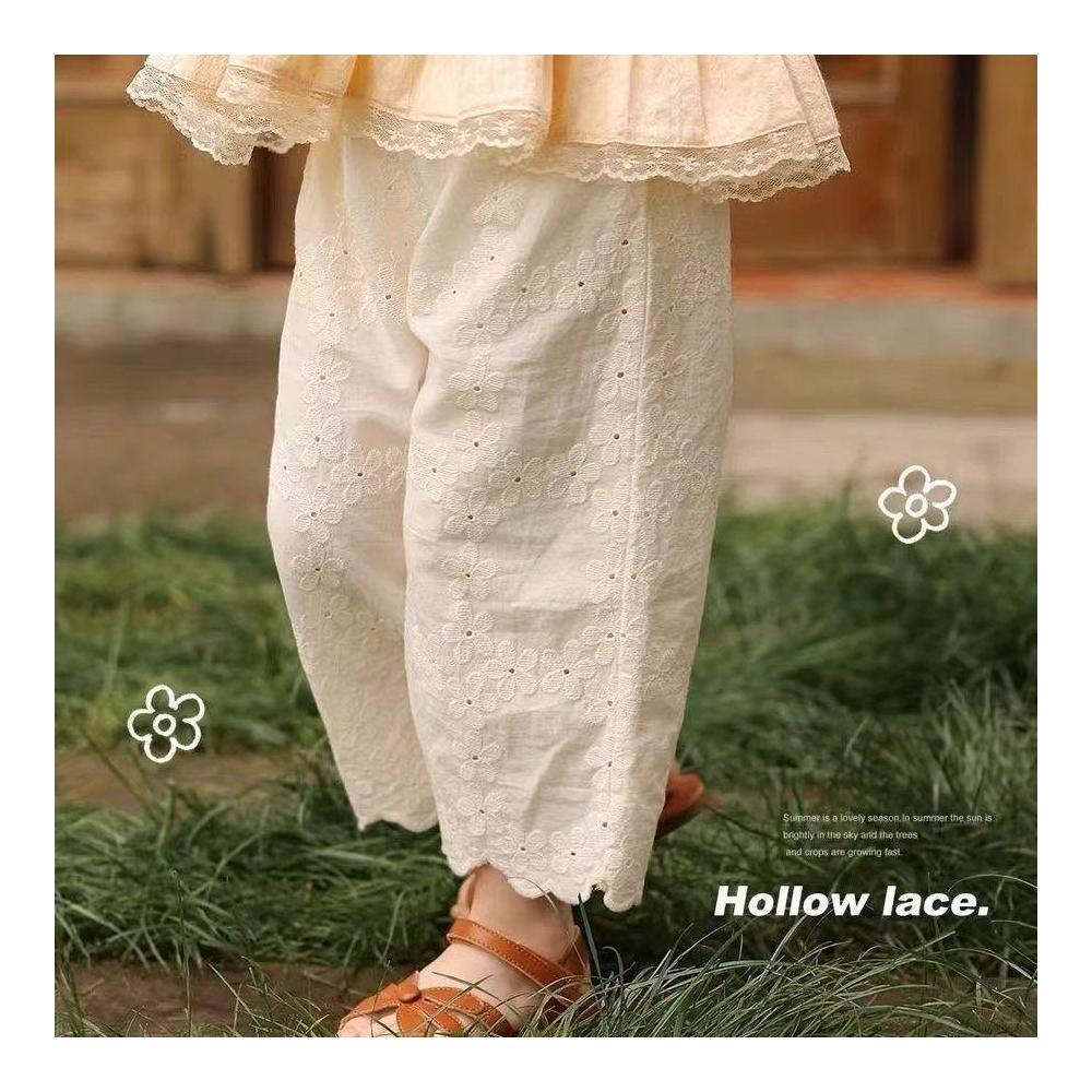 優先購女童小衆復古鏤空花邊公主休閒褲女童夏季洋氣防蚊褲兒童褲子潮