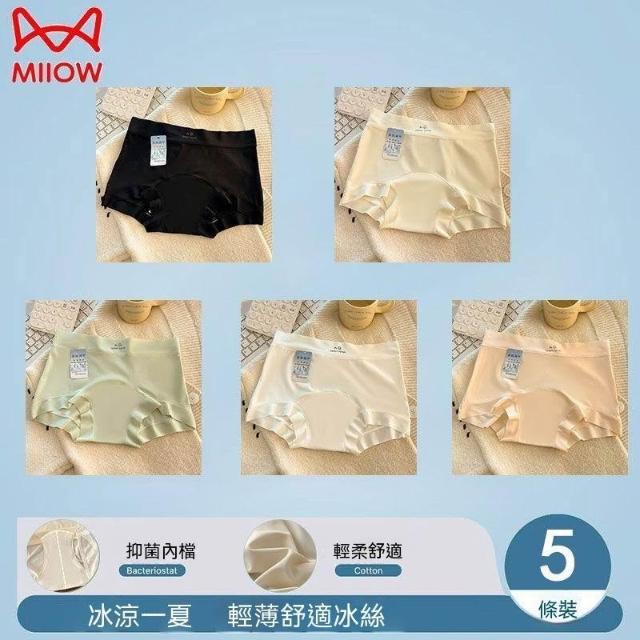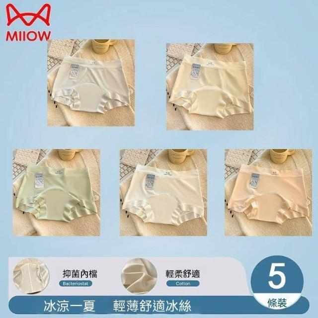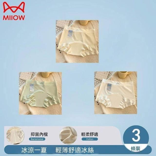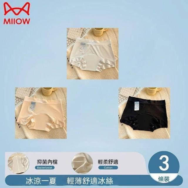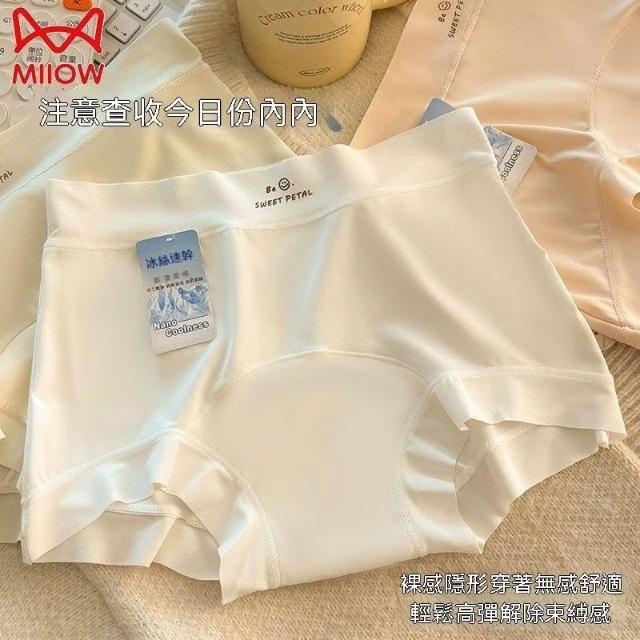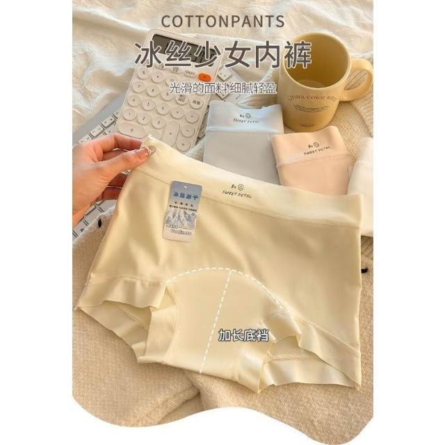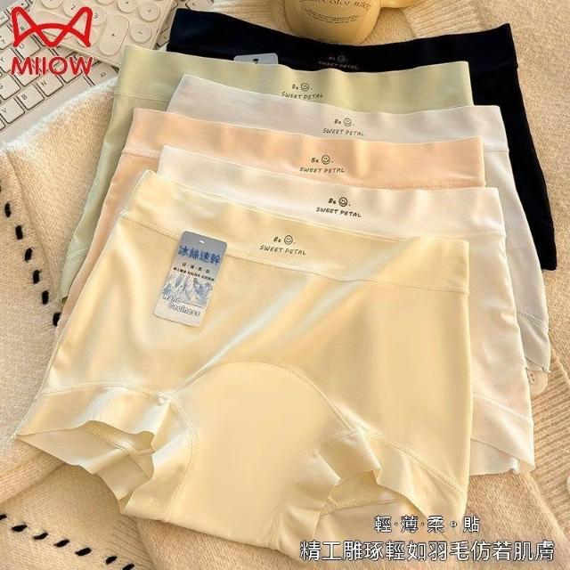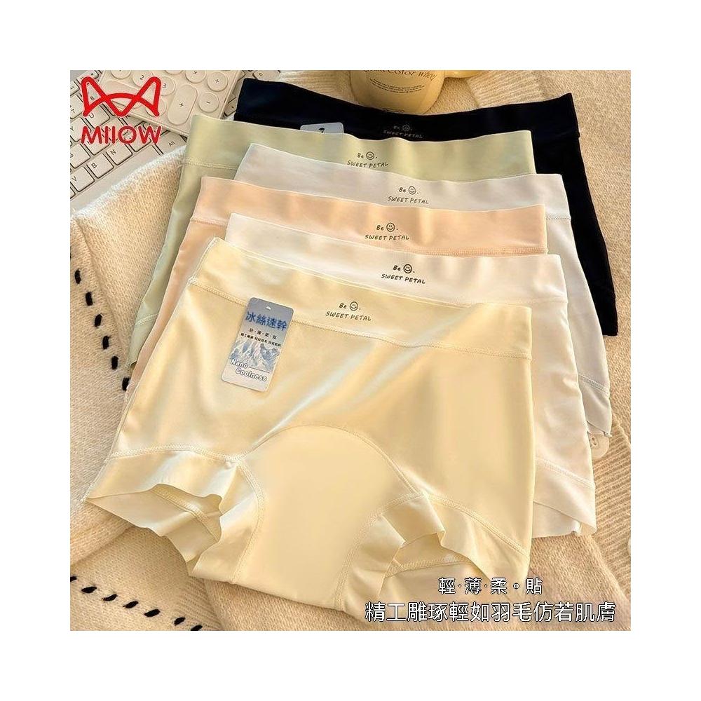 優先購貓人女士內褲女平角褲冰絲無痕少女純棉抑菌襠包臀透氣大碼四角褲