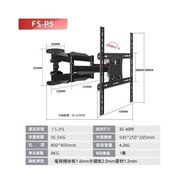 電視壁掛架丨7KG加厚型丨32-85英吋 通用型電視架 電視機架電視支架增高架掛架壁架螢幕顯示器固定架