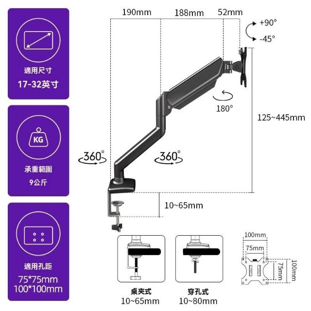 氣壓式螢幕支架丨 17吋\32吋懸浮螢幕架丨桌邊夾桌上架桌面電腦螢幕增高架 筆電螢幕架墊高架顯示器支架
