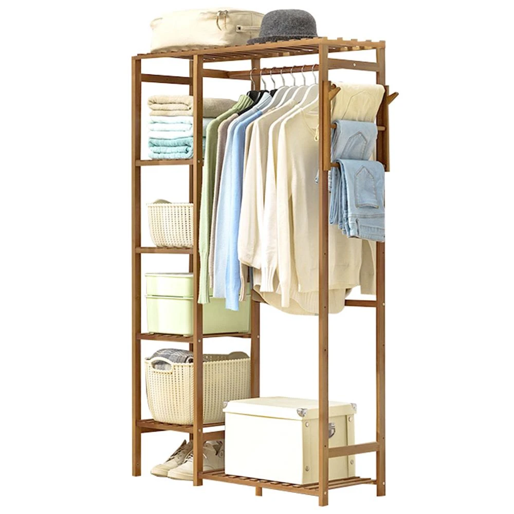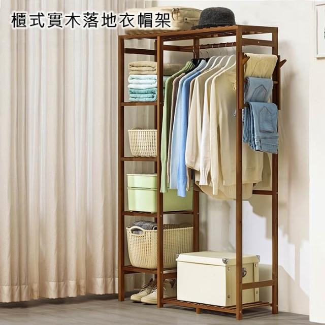 圓木居.楠竹經典款櫃式實木落地衣帽架-茶色 衣櫥衣櫃收納 木質掛衣架 衣帽架 【YV9720】