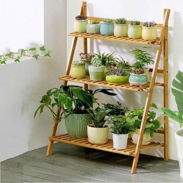 楠竹陽台三層花架 實木多層落地花架盆栽架【YV9723】快樂生活網