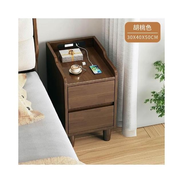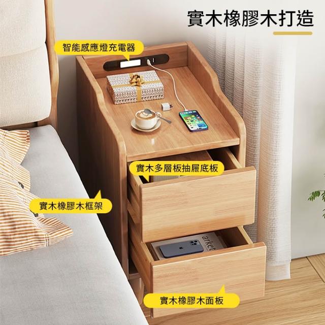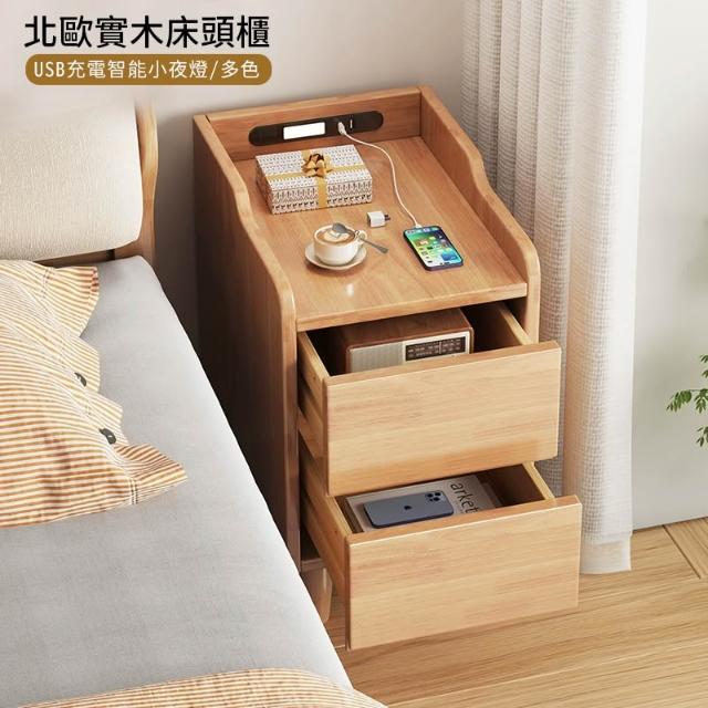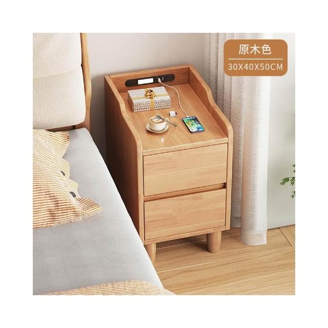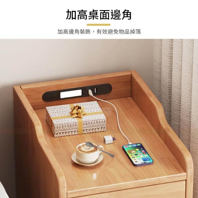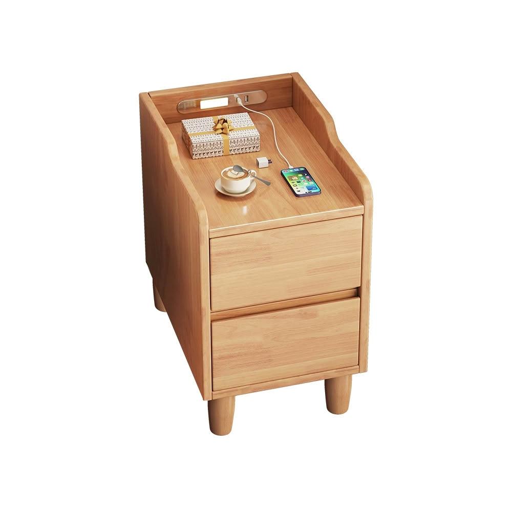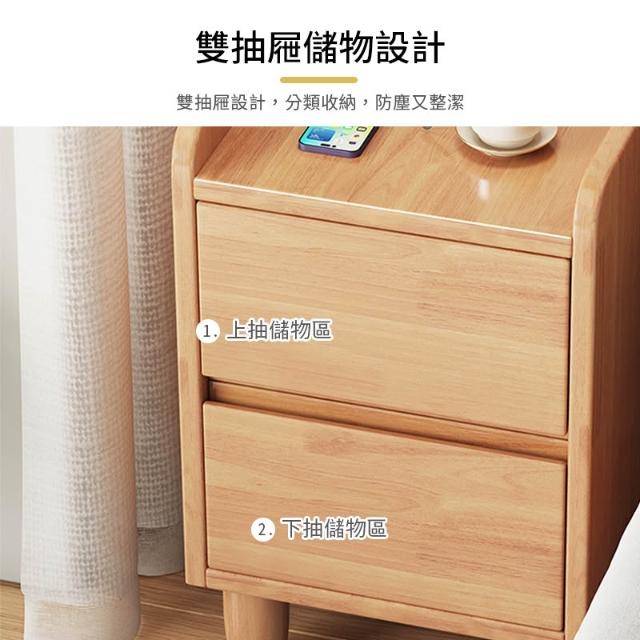 實木雙抽智能床邊櫃 床邊櫃 床頭櫃 抽屜櫃 床頭收納櫃 實木家具【Y11384】快樂生活網