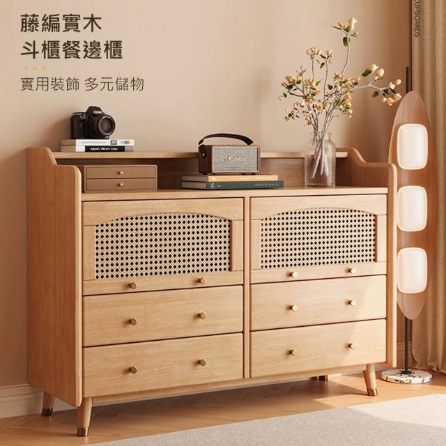 藤編實木四斗兩門櫃餐邊櫃 120公分 【11733】餐具櫃 餐櫃 邊櫃 收納櫃 廚房收納 餐廚收納