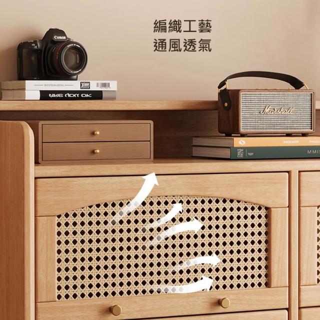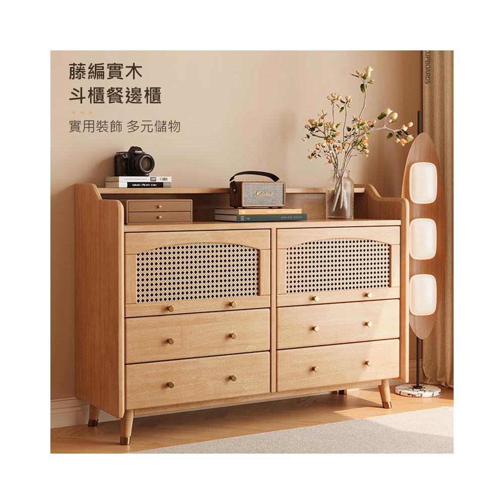 藤編實木四斗兩門櫃餐邊櫃 120公分 【11733】餐具櫃 餐櫃 邊櫃 收納櫃 廚房收納 餐廚收納