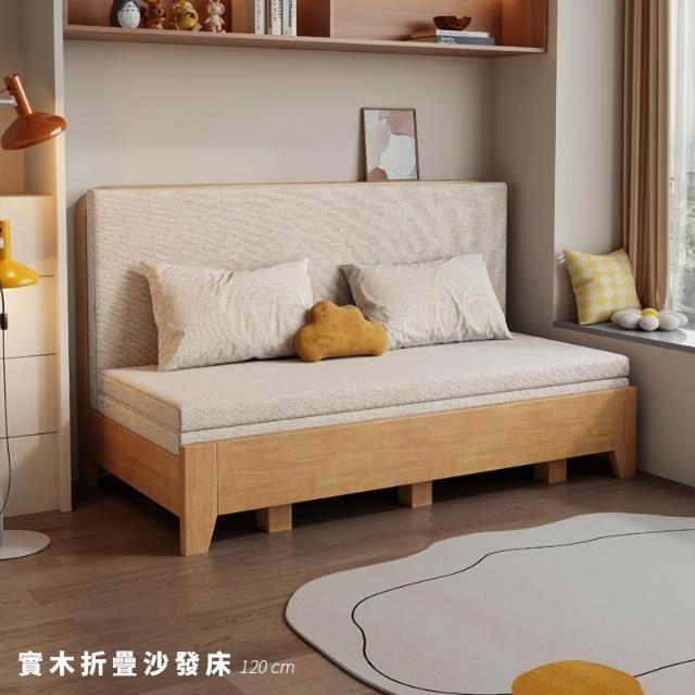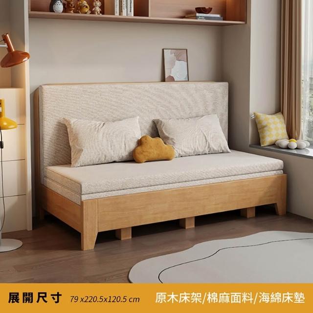 可折疊實木多功能沙發床 120公分 【11726-11727】床框 床架 床組 床頭 單人床架 雙人床架 摺疊床