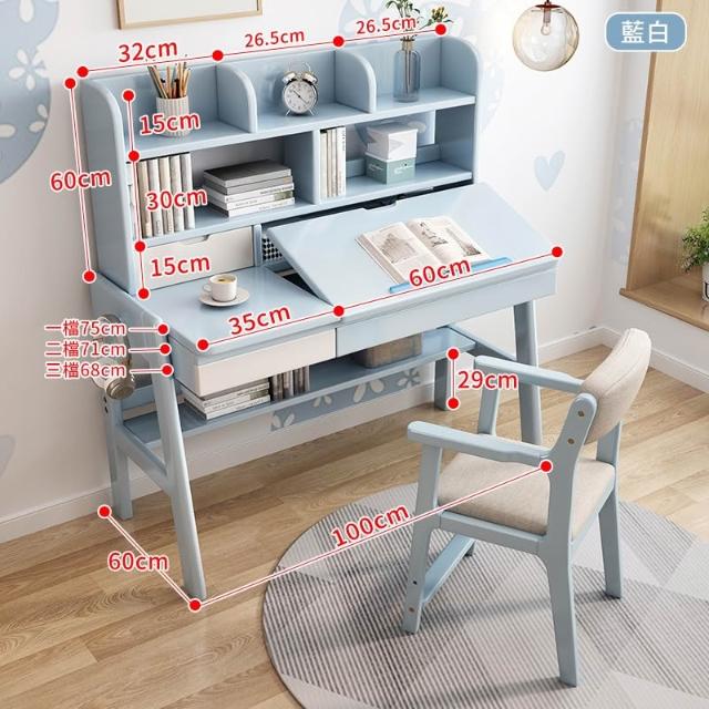 實木兒童翻蓋雙層書架書桌 【12055-12056】兒童升降桌 兒童書桌 學習桌 實木書桌 兒童成長書桌