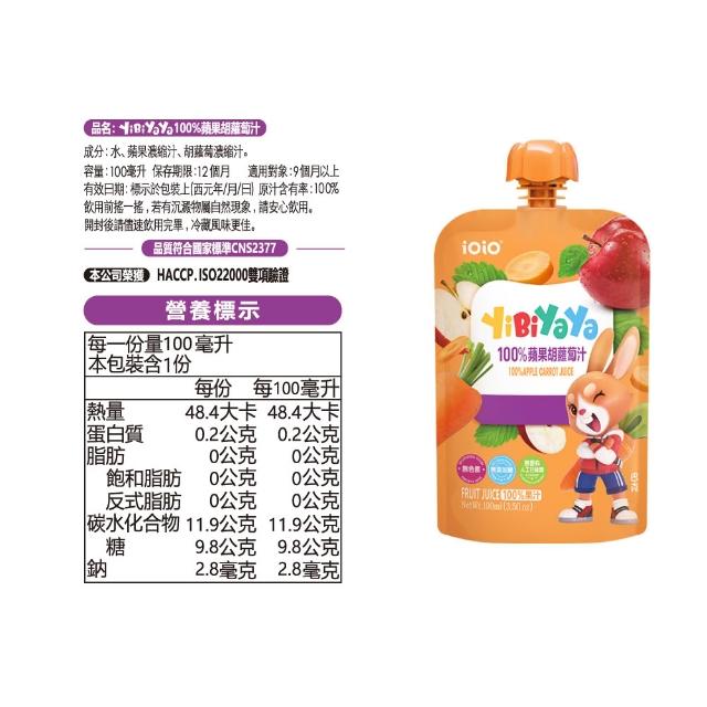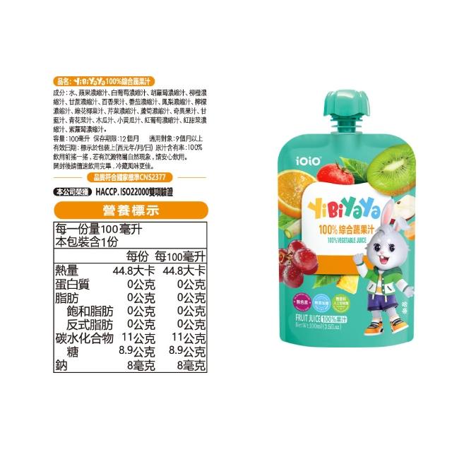 十全iOiO食在愛我YiBiYaYa一比呀呀100%綜合果汁100mlX15入/組